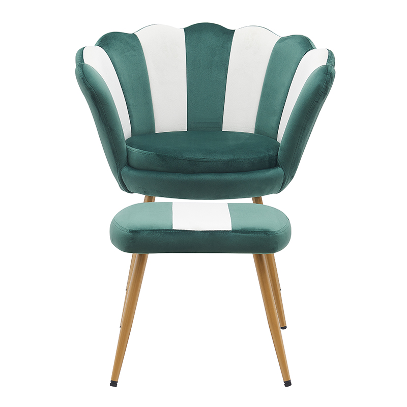 Le sedie in stile soggiorno Velvet Petals con ottomano Y-C27 sono un set di mobili elegante e confortevole che aggiunge funzionalità ed estetica all'arredamento della tua casa. Questo set comprende un paio di sedie particolari e un pouf, ciascuno rivestito in tessuto di velluto di alta qualità, morbido e lussuoso al tatto.