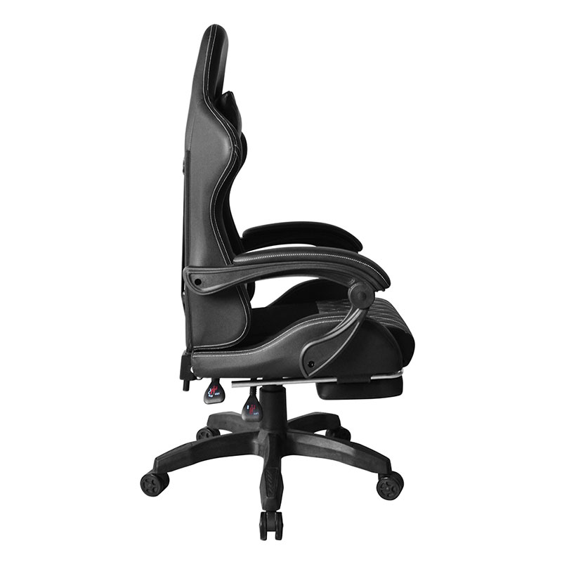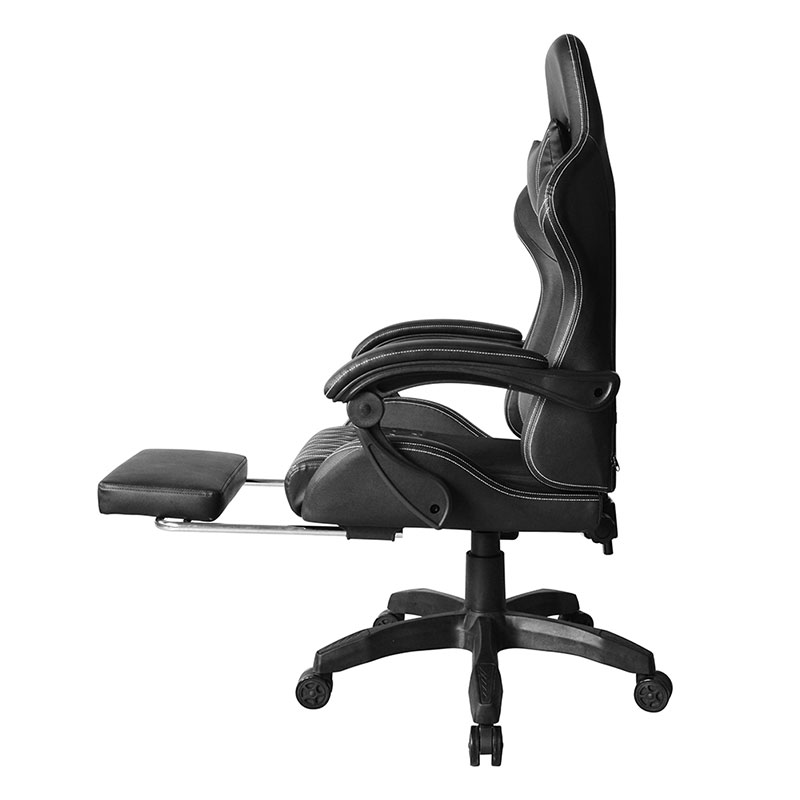 | Materiale | PVC Bracciolo regolabile in PP Meccanismo reclinabile Alzata a gas classe 3 da 100 mm Base in nylon da 320 mm Ruote in colore PU da 50 mm Con cuscino per il collo e cuscino per la vita Cartone: 250 libbre Con poggiapiedi Con luce RGB |